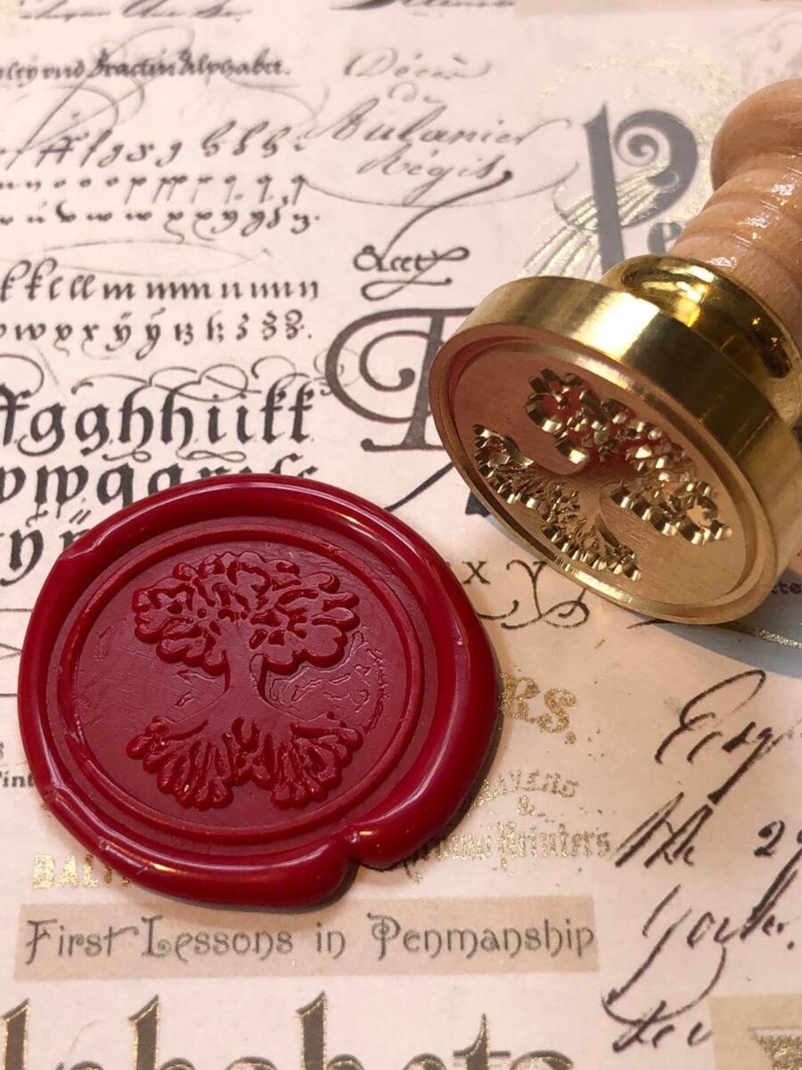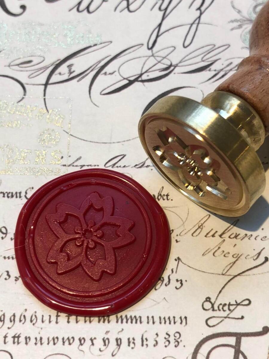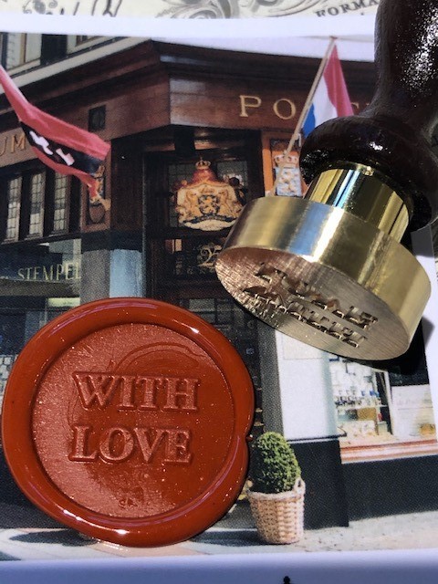 Lakstempel symbool 25 mm rond op luxe houten houder. houder kan afwijken van de foto.