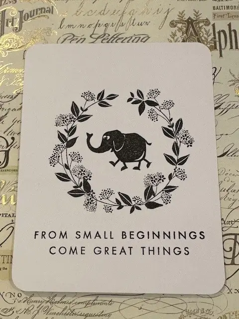 Cats on appletrees stempel op hout. Formaat 62×58 mm. De 3 voorbeeldkaartjes zijn gemaakt met de hoekpons corner rounder (categorie accessoires) en de tekst from small beginnings vindt u onder categorie PW teksten. Alle andere stempels zijn van Cats.