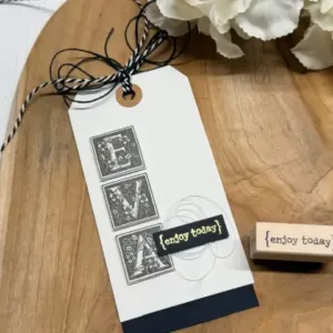 De stempels van de mooie letters EVA vindt u bij categorie letters. De tekst is gestempeld met versmark en behandeld met wow reliefpoeder wat verwarmd dient te worden voor het glanzende verhoogde effect.
