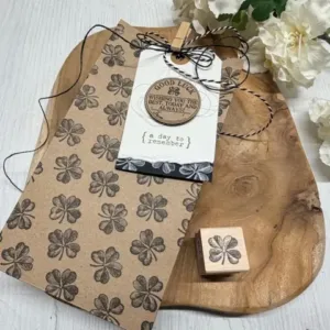 Dit is wel 1 van onze populairste stempels, klein maar fijn. Op een klein kaartje of aanhangkaartje maar ook beeldschoon op inpakpapier of een zakje zoals op het voorbeeld.