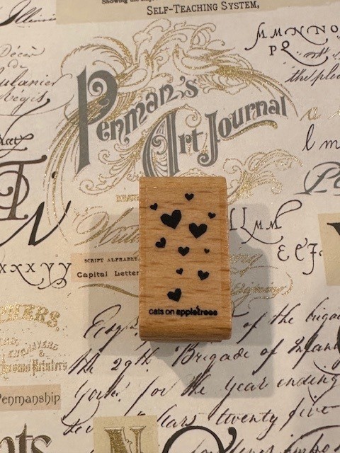 Cats on appletrees stempel op hout. Formaat 22×13 mm.