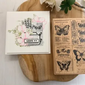 Florileges stempel op hout. Formaat 142×93 mm. Op de kaarten van Inge een gedeelte van deze stempel gebruikt en uitgeknipt als ornament gebruikt. Alle stempels van deze kaarten ook online te koop.