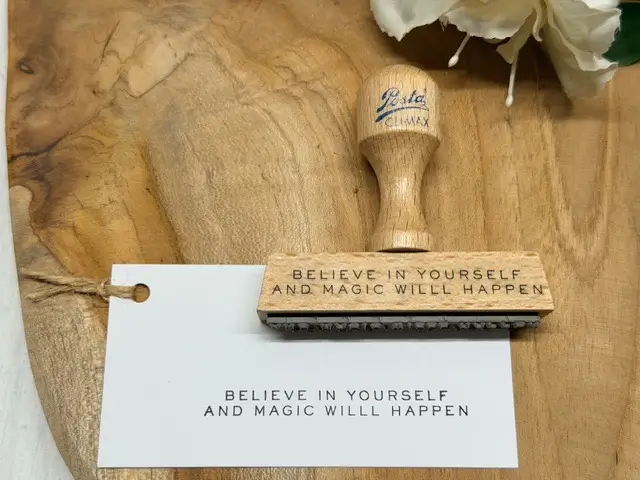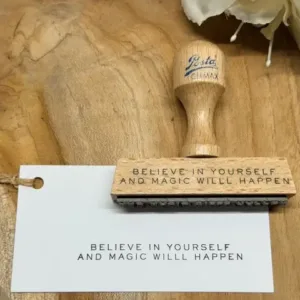 Stempel uit onze eigen collectie, op luxe houten houder. Formaat 66×7 mm.
