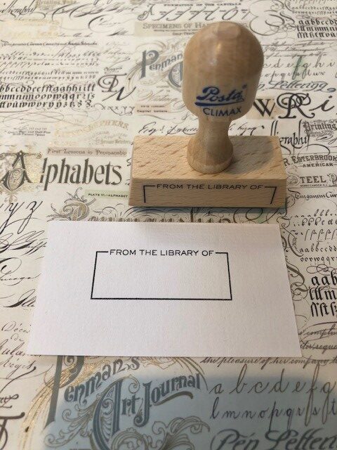 PW stempel op hout, tekst in een mooie strakke letter met bijpassend strak kader. Formaat 49×20 mm.