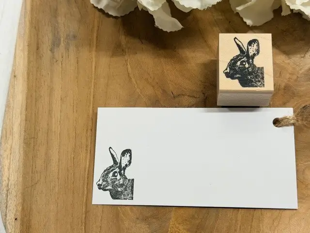 Op de kaart van Inge verschillende konijnen gestempeld. Alle stempels zijn ook online te koop.