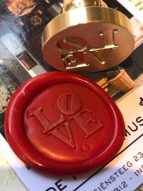 Lakstempel symbool 25 mm rond op luxe houten houder. De houder kan afwijken van de foto.