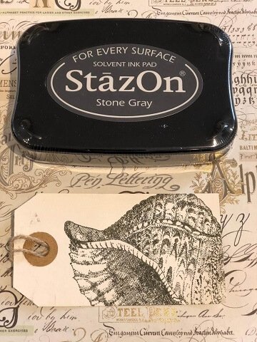 StazOn stone gray. Sneldrogend, watervast stempelkussen. Werkt zelfs op glad papier. Formaat 75x45mm maar het verhoogde kussen geeft u de mogelijkheid elk formaat stempel te beinkten. Ook zeer geschikt om mee op kraft zakjes en tasjes te stempelen.